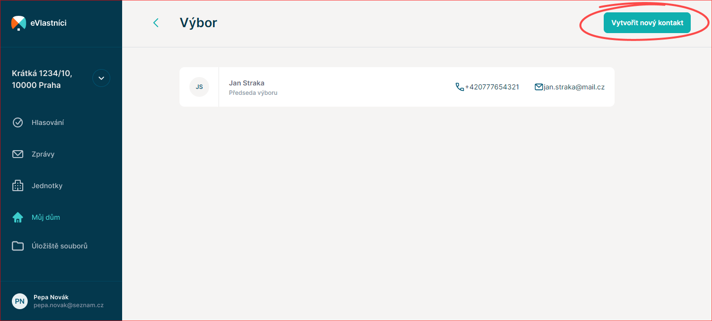 Následně kliknete na tlačítko "Vytvořit nový kontakt"