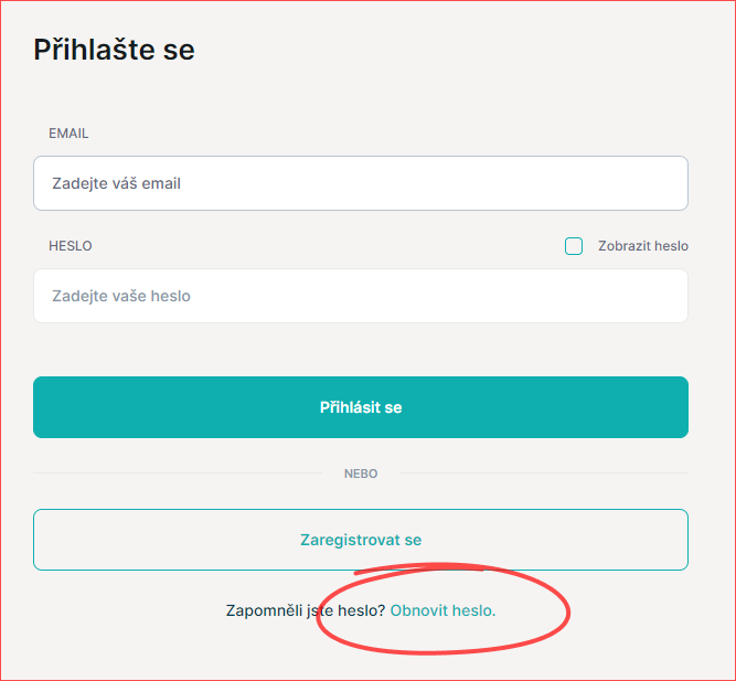 Pokud si nepamatujete vaše heslo, máte možnost ho obnovit, pomocí této funkce.