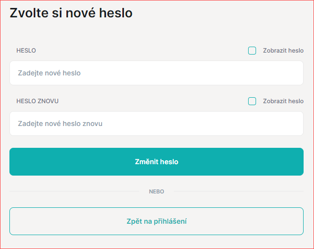 Po kliknutí na tlačítko už jen vyplníte své nové heslo a můžete ho použít pro přihlášení.